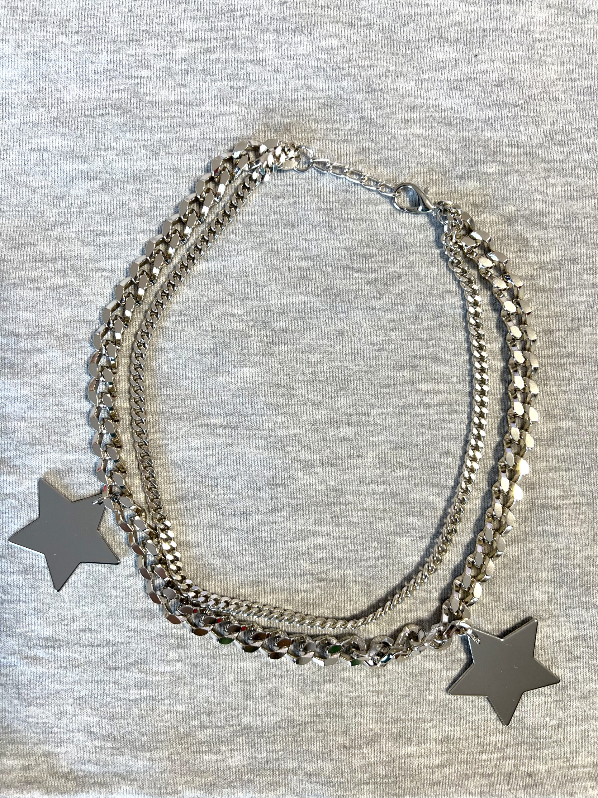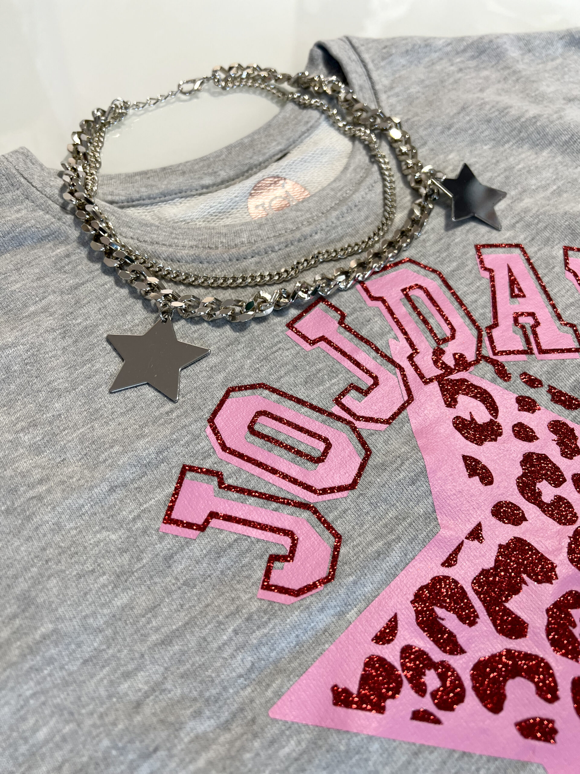 Felpa girocollo crop in French Terry con collana silver doppia catena e stelle